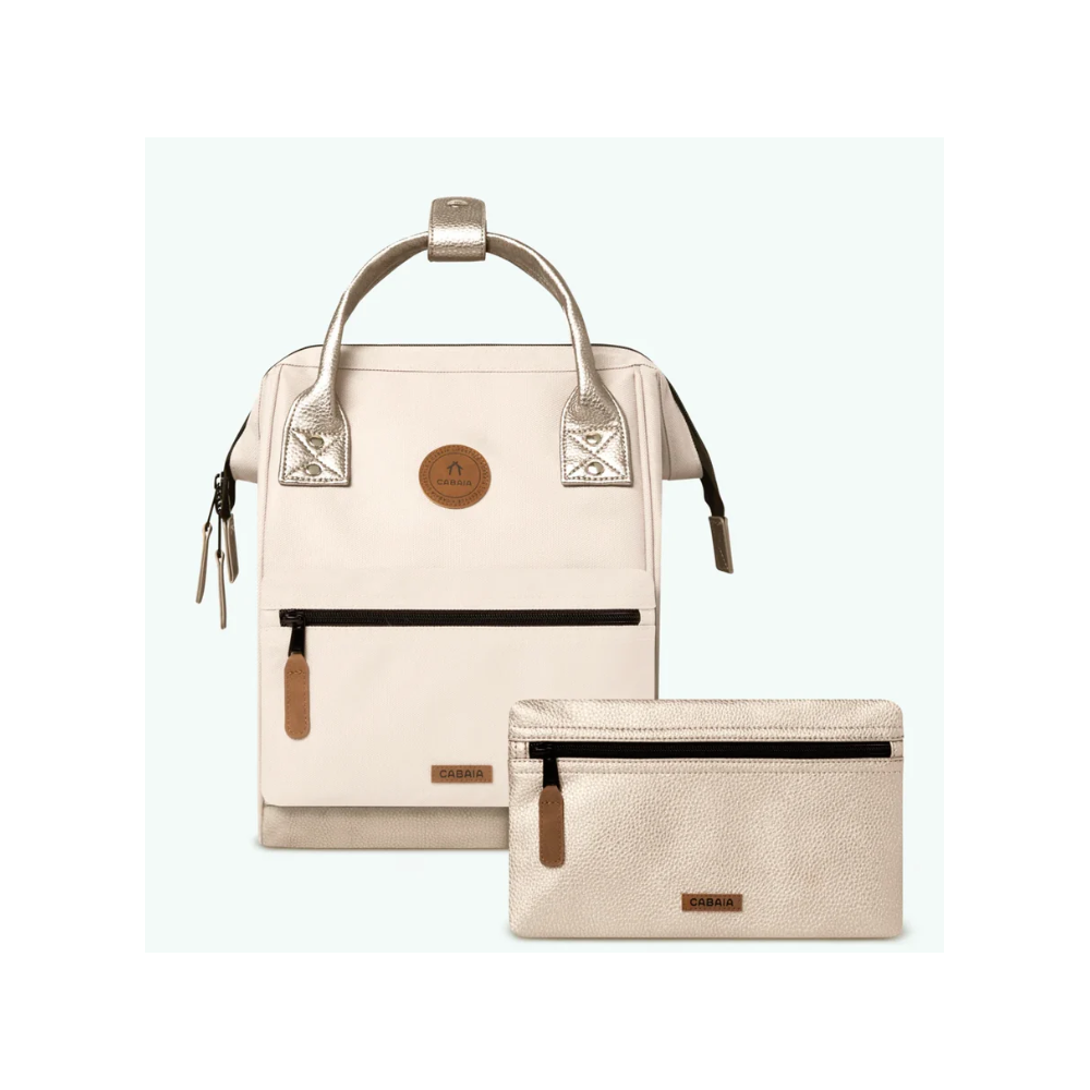 Notre sac small peut contenir : Un petit cahier et un pc 10,5" OU des livres et un Ipad OU 1 jeans / 2 t-shirts / 2 caleçons / 1 ipad. Les formats A4 n'entrent pas dans un sac à dos mini