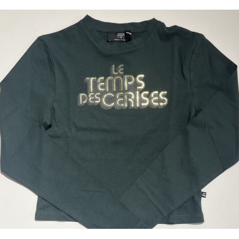 T-shirt manches longues vert avec inscription "LE TEMPS DES CERISES" en dorée.