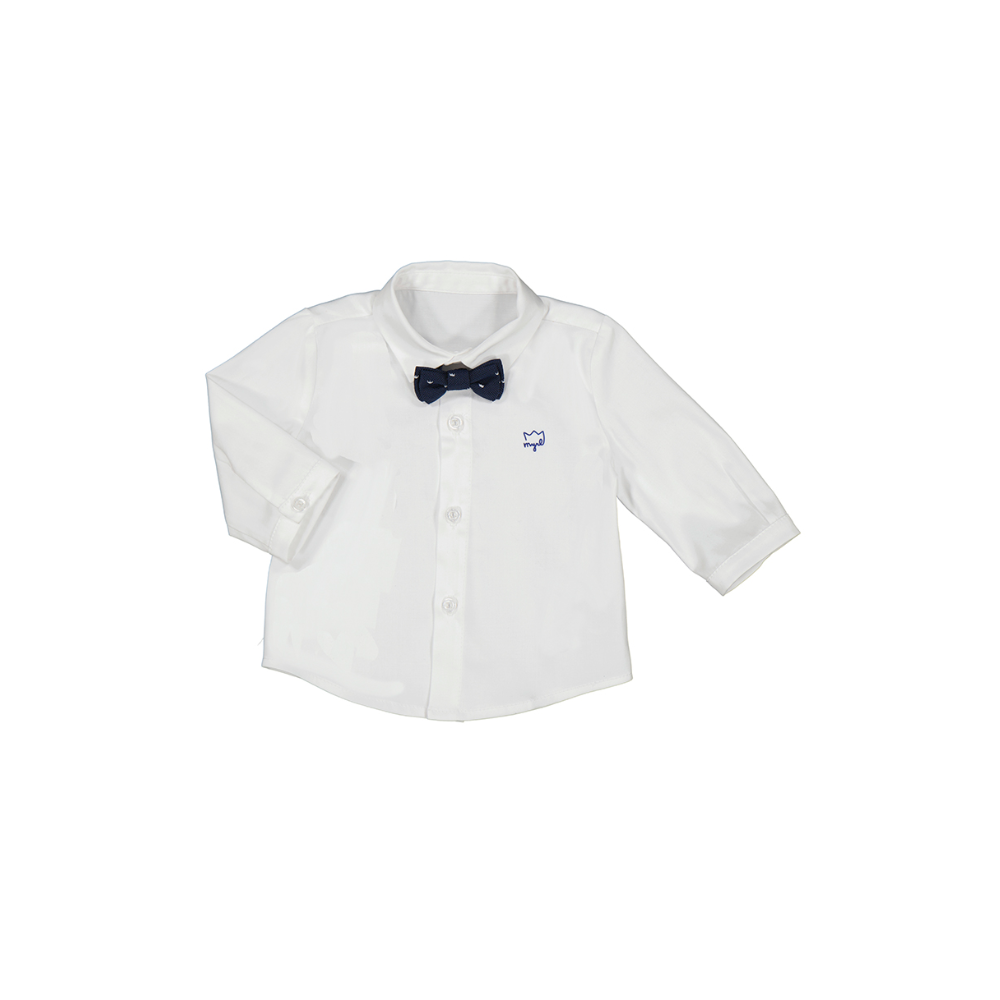 Chemise manches longues blanche. Avec nœud papillon bleu marine imprimé.