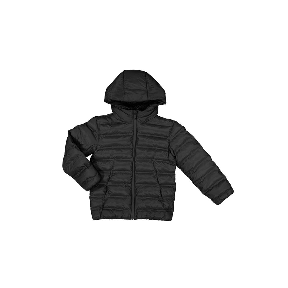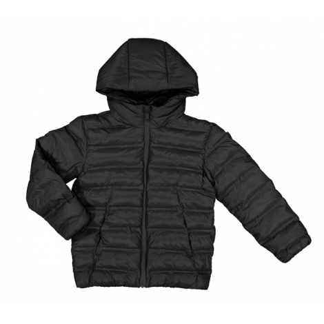 Doudoune matelassée fine noir à capuche.