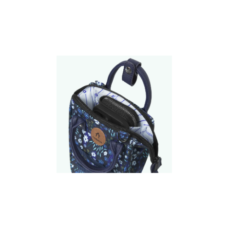 À porter en bandoulière, glissez y un smartphone (hauteur maximum de 18 cm), courez sous la pluie (le tissu est déperlant), enlacez un arbre (la matière est végan).