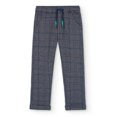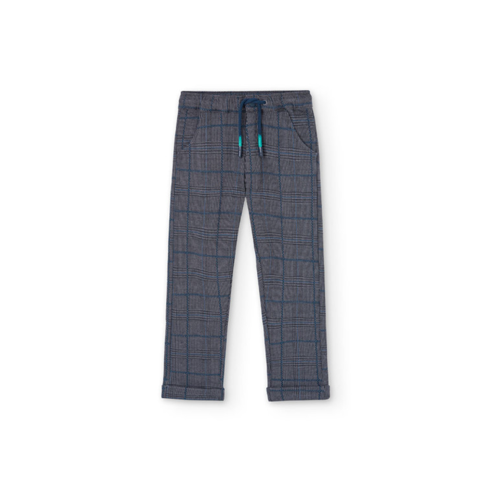 Pantalon gris à carreaux.