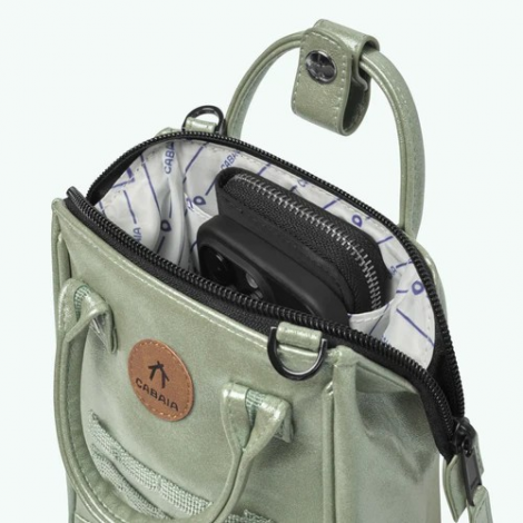 À porter en bandoulière, glissez y un smartphone (hauteur maximum de 18 cm), courez sous la pluie (le tissu est déperlant), enlacez un arbre (la matière est végan).