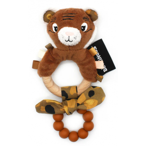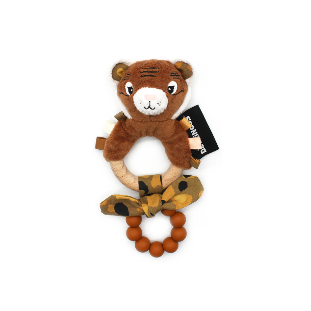 Ce jouet à mordiller est le bon compromis entre un anneau de dentition et un jouet d'éveil grâce aux différentes matières qui le composent.