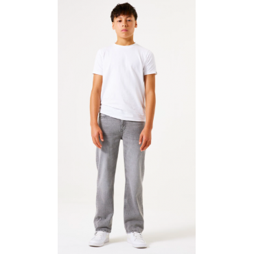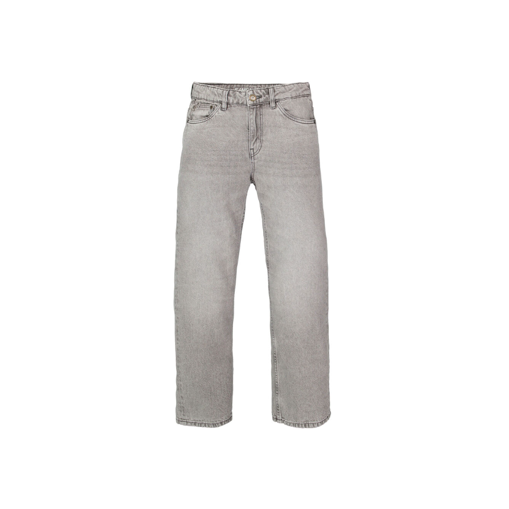 Jeans gris, coupe large.