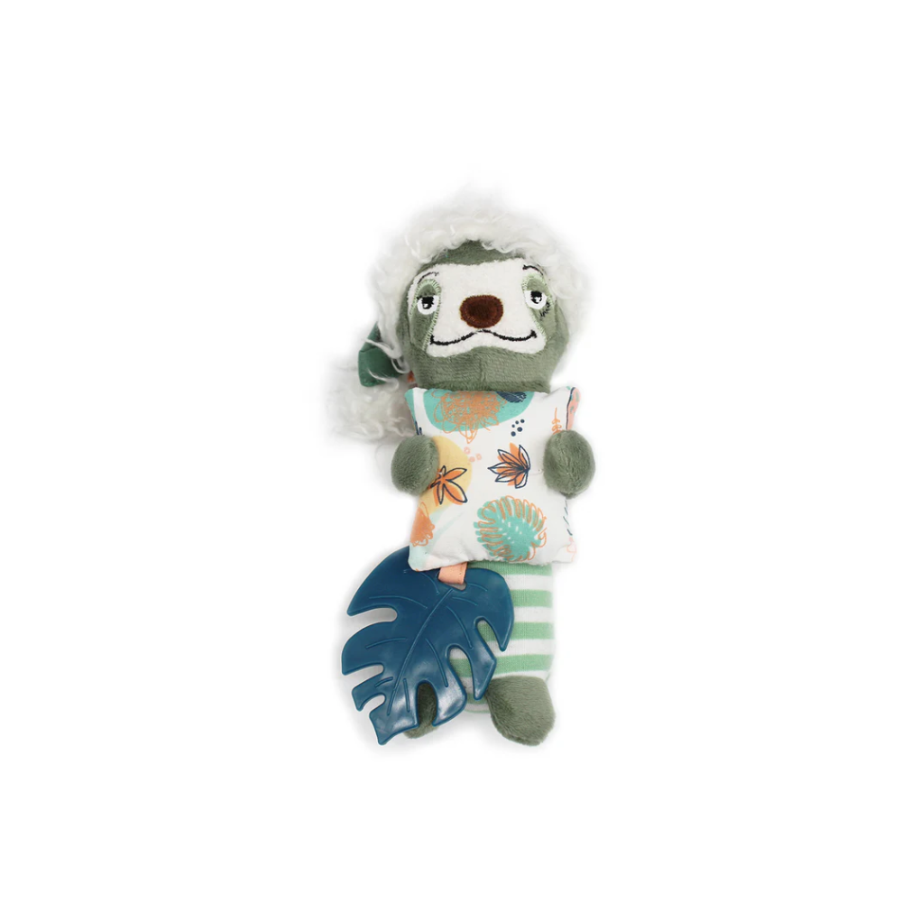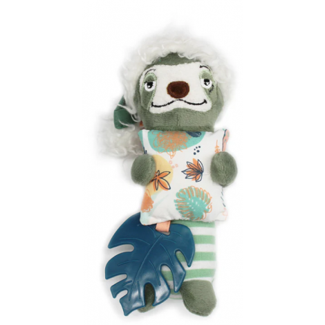 Découvrez notre adorable peluche carillon Chillos le paresseux ! Cette petite peluche nomade émet un bruit agréable de carillon pour apaiser votre enfant. Son petit coussin en papier bruissant et son anneau de dentition bleu en forme de feuille offrent une expérience sensorielle complète. La peluche carillon peut s'accrocher à un lit, une poussette, un transat, une arche,... Emportez là facilement n'importe où pour divertir votre bébé. Cette peluche carillon verte et colorée est idéale pour un cadeau naissance.