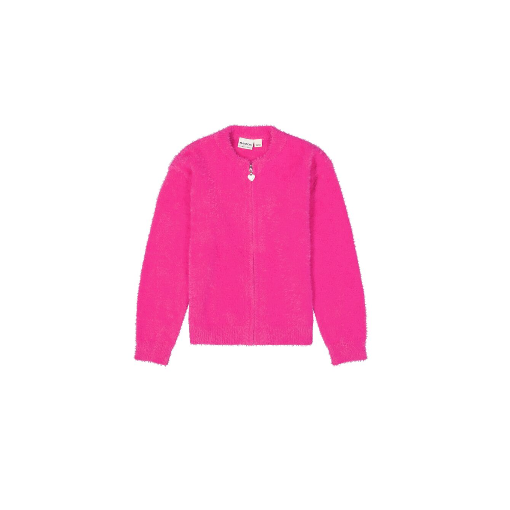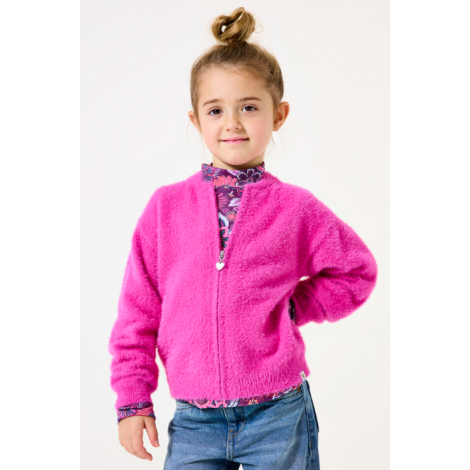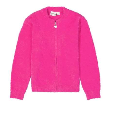 Gilet zippé à manches longues de couleur rose fuchsia éclatant.
