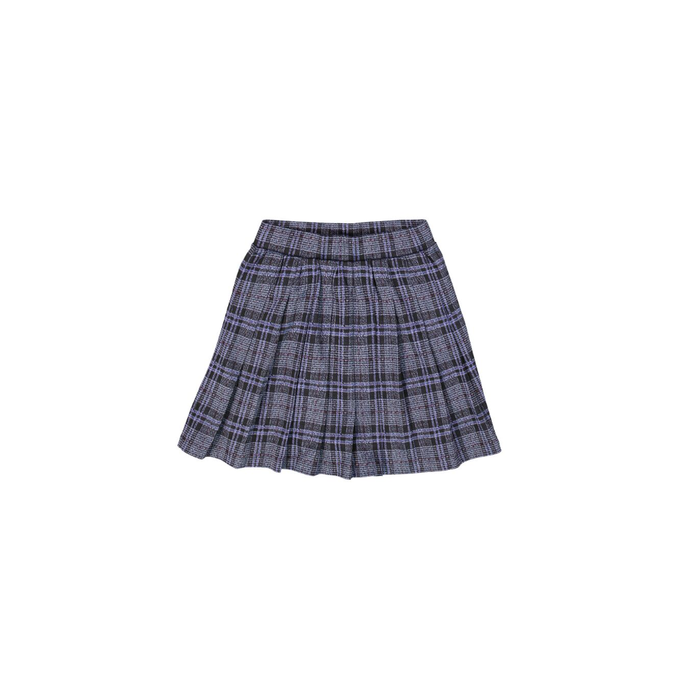 La jupe a une taille plate et structurée, sans ceinture apparente, et les plis sont nets et uniformes, donnant du volume et un effet évasé.