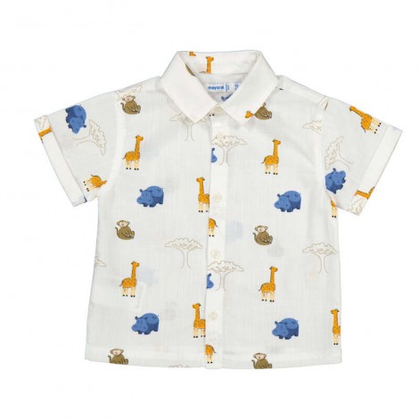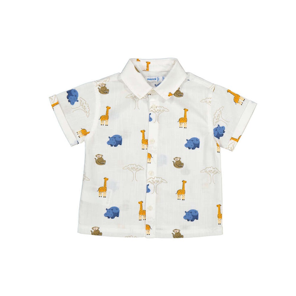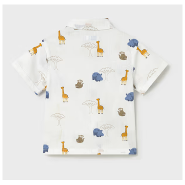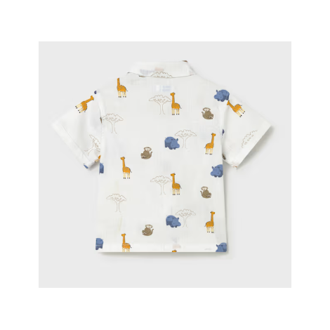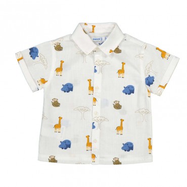 Chemise à manches courtes, en tissu léger et agréable à porter. Imprimé ludique avec animaux de la savane sur fond blanc. Fermeture boutonnée sur le devant. Parfaite pour un look estival, confortable et plein de fraîcheur.