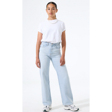 Jean à coupe droite ; Ce modèle est légèrement plus lâche autour de la cuisse et a une jambe tendue, ce qui le rend plus lâche autour du mollet et de la cheville. Ce jean à 5 poches ont une taille haute et se ferment avec fermeture éclair et boutons. La largeur de la taille peut être facilement ajustée avec les élastiques à l’intérieur.