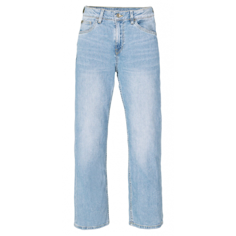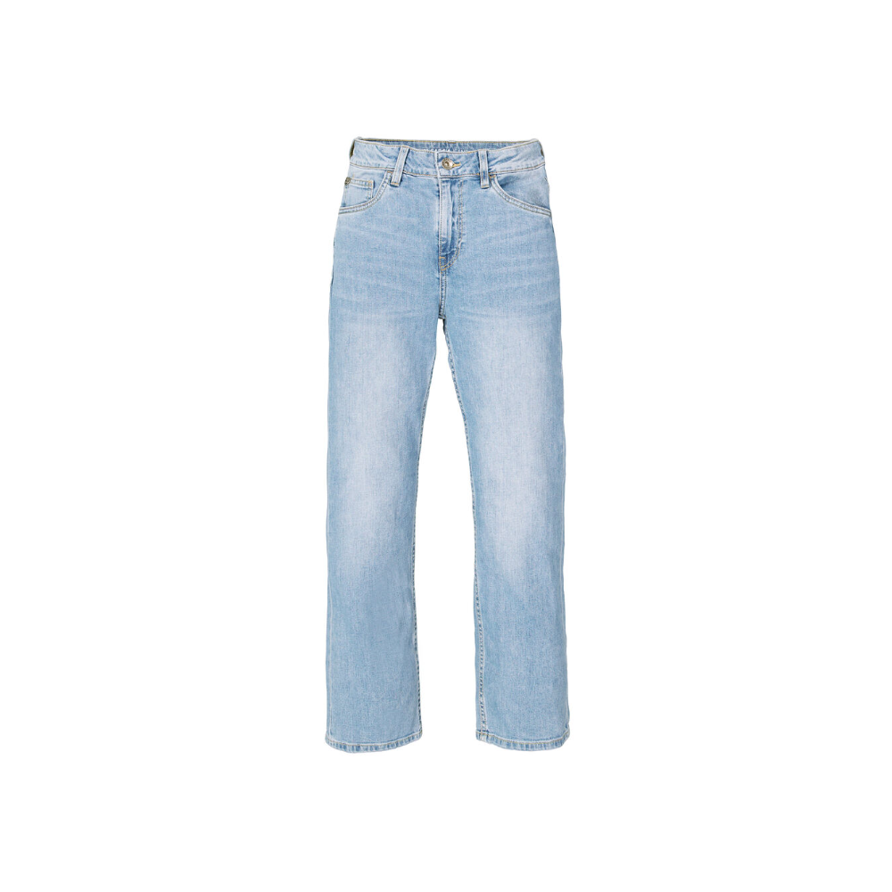 Jean droit, ce modèle est plus ample au niveau du haut de la cuisse et a une jambe tendue, ce qui le rend plus lâche autour du mollet et de la cheville. Ce jean à 5 poches ont une taille décontractée et un bouton et fermeture éclair avec une ceinture réglable.