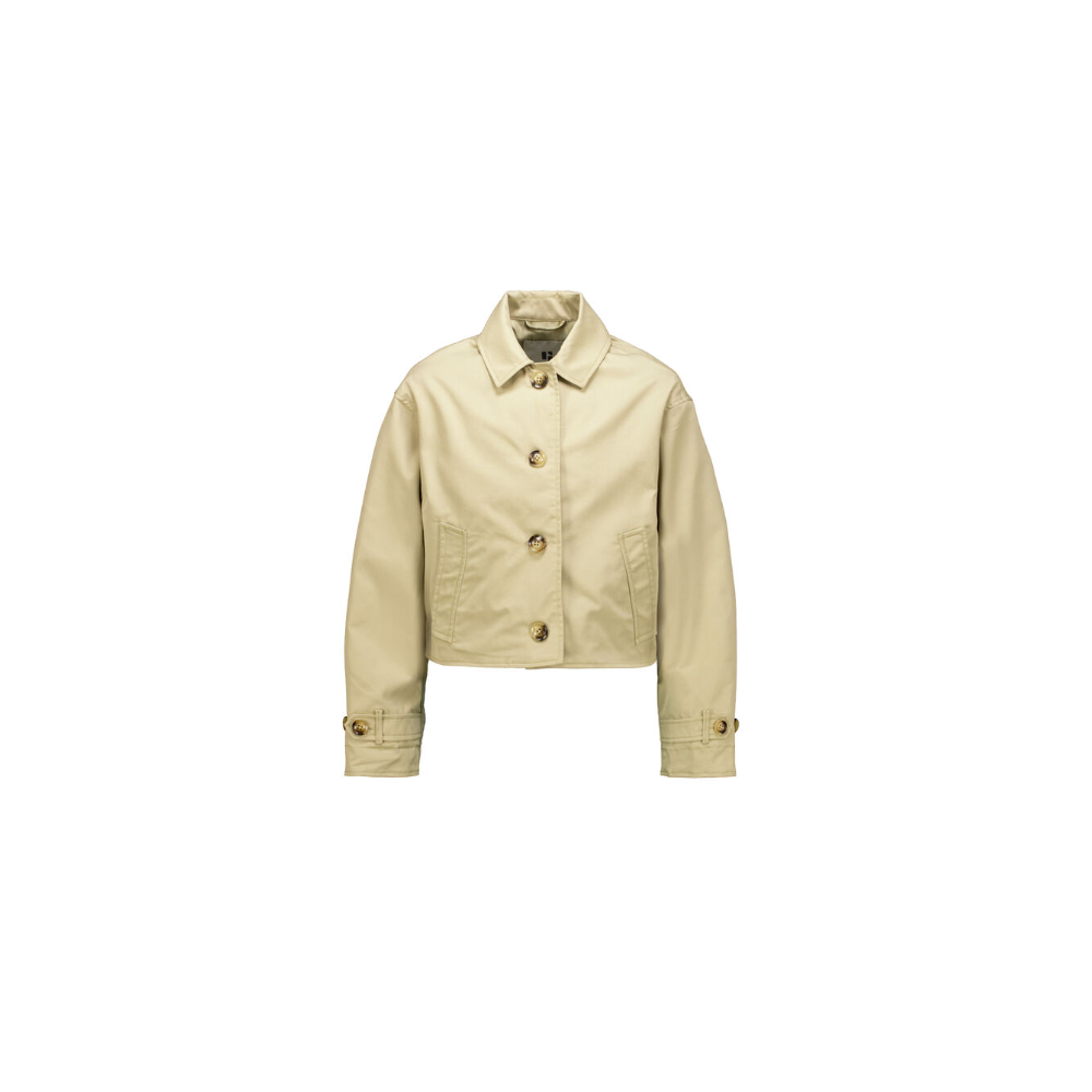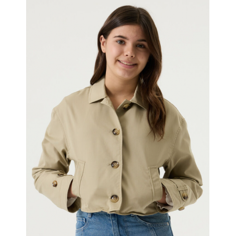 Veste en sergé en coton avec poches latérales. Cette veste présente un col, des manches longues, une fermeture à boutons et une coupe à épaule tombée. Cet article est composé de 62 % polyester et 38 % de coton.