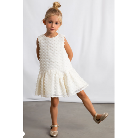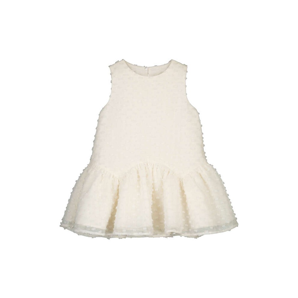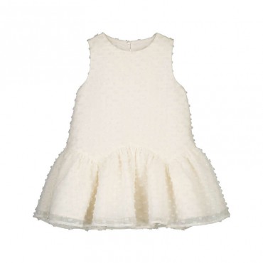 Robe sans manches en coloris blanc, confectionnée dans une matière légère et délicatement texturée. Coupe évasée avec jupe volumineuse apportant une belle tenue et un effet raffiné. Fermeture discrète au dos pour un enfilage facile. Idéale pour une cérémonie, un événement ou une occasion spéciale.