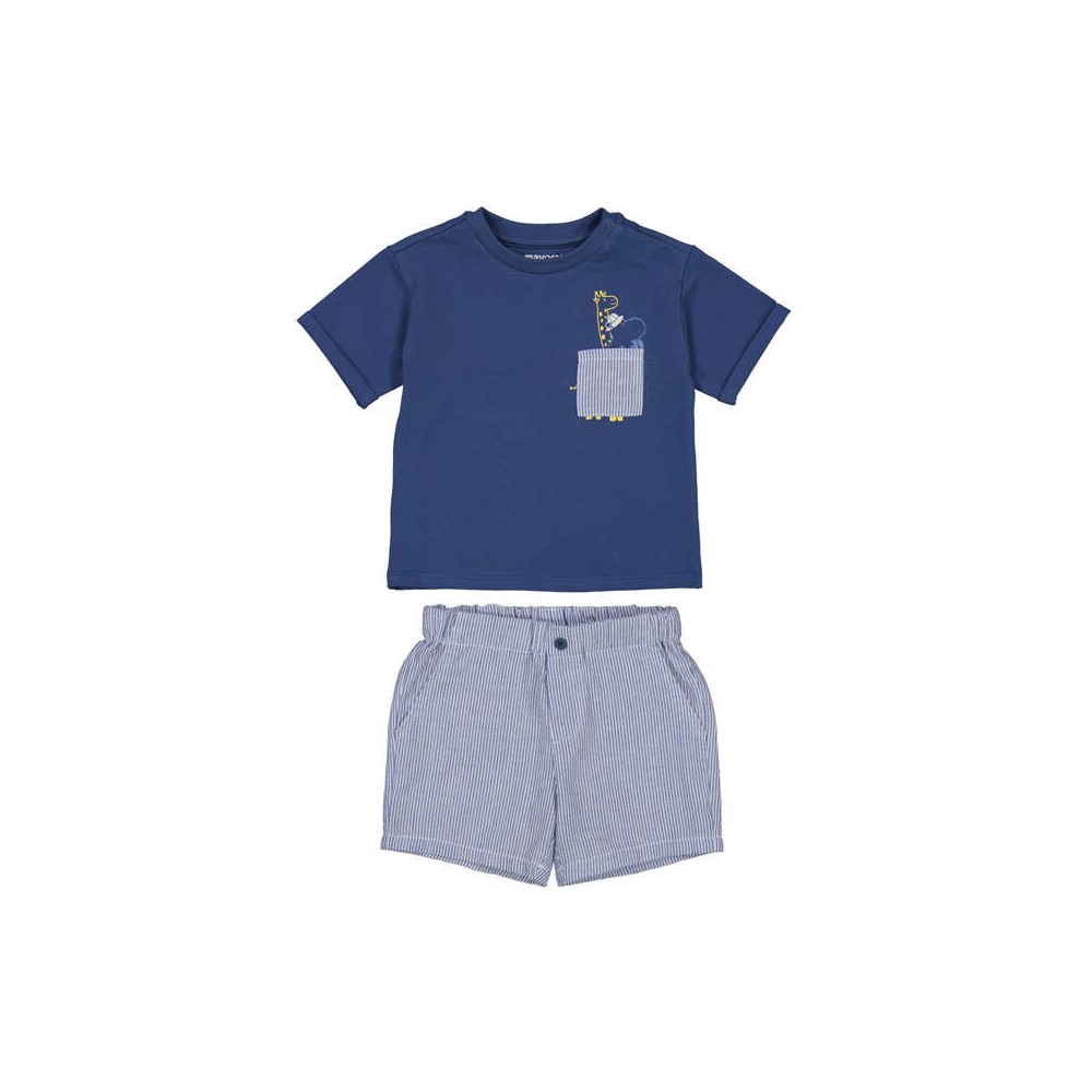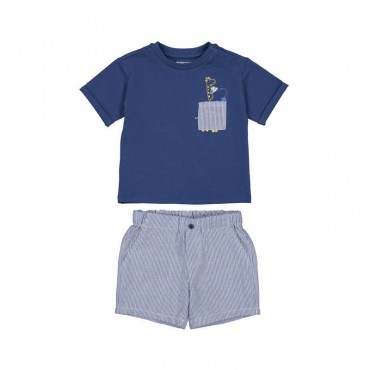 Ensemble enfant composé d’un t-shirt bleu à manches courtes avec motif animal sur la poitrine et d’un short rayé léger. Haut à coupe confortable, facile à enfiler pour un usage quotidien. Short avec taille élastiquée pour un maintien optimal et une grande liberté de mouvement. Matière douce et respirante, idéale pour la saison printemps/été. Parfait pour un look casual, pratique et tendance.