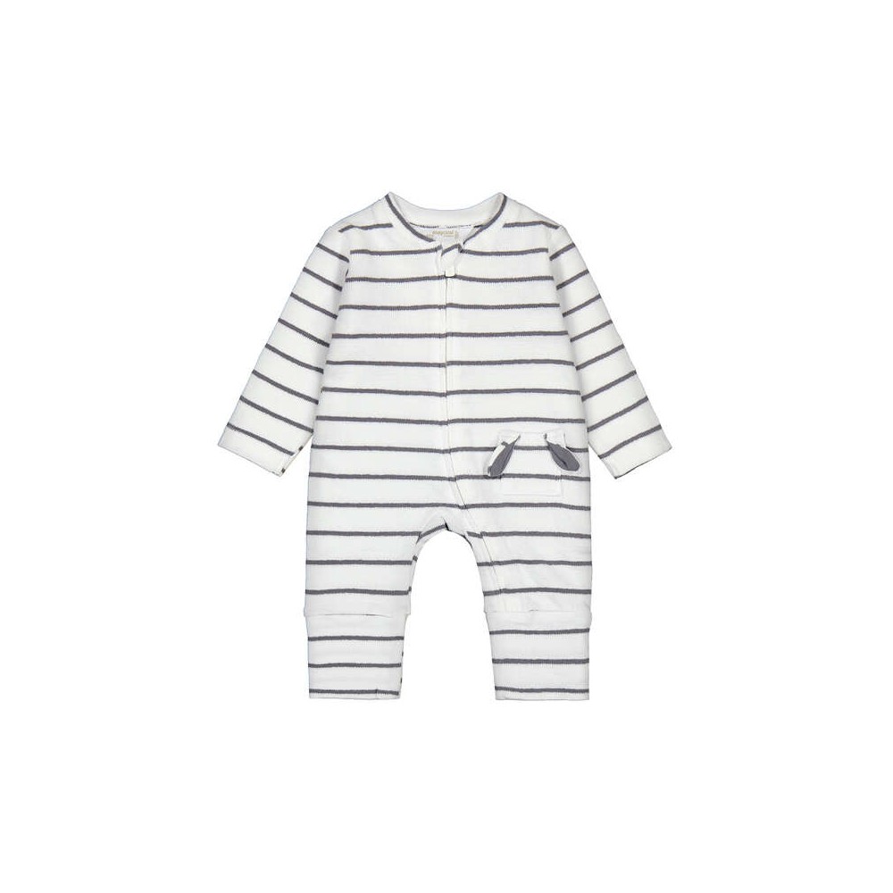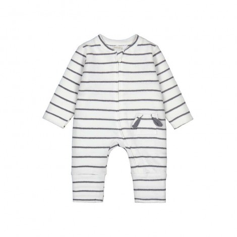 Pyjama sans pied blanc à rayures grises.